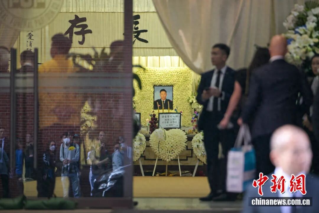 灵堂内外摆放着各界致送的花牌,包括全国政协副主席梁振英、香港特区行政长官李家超,以及香港特区政府政务司司长陈国基、律政司司长林定国、保安局局长邓炳强、消防处处长杨恩健等人。