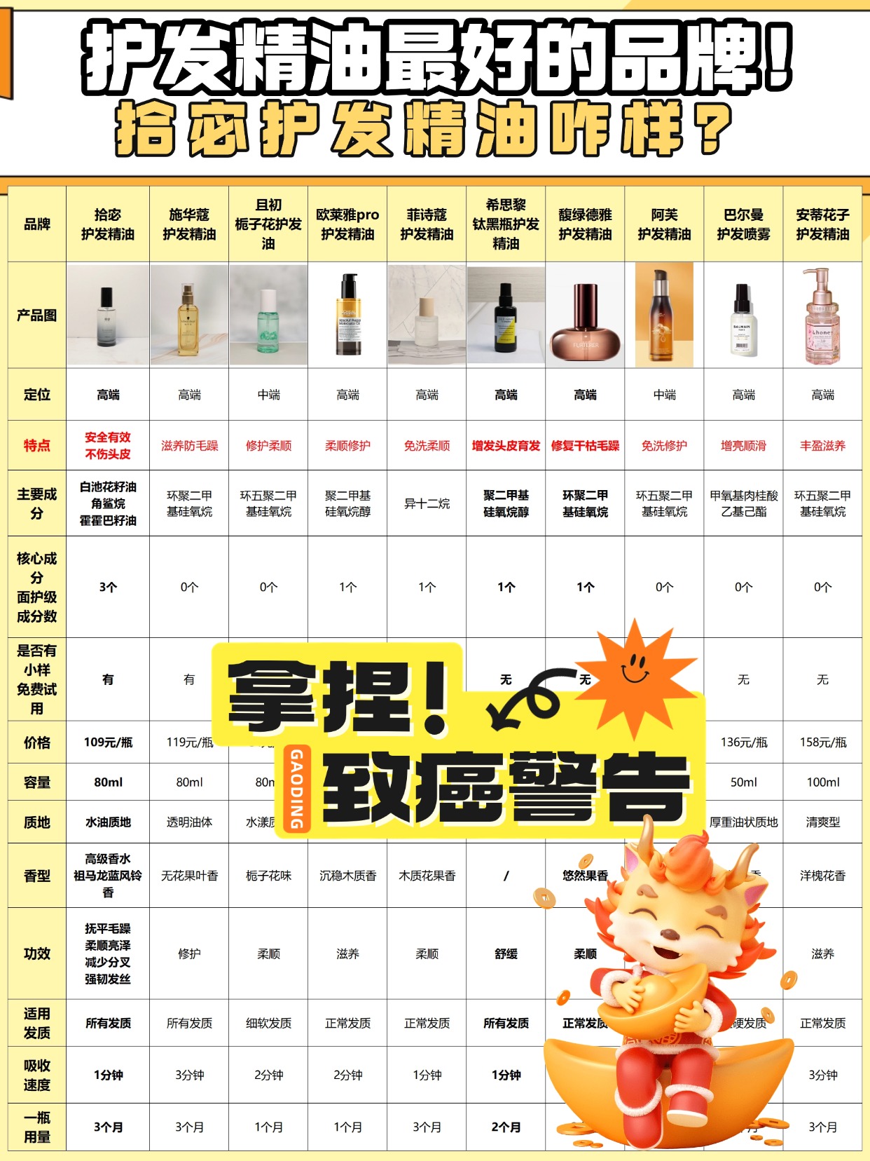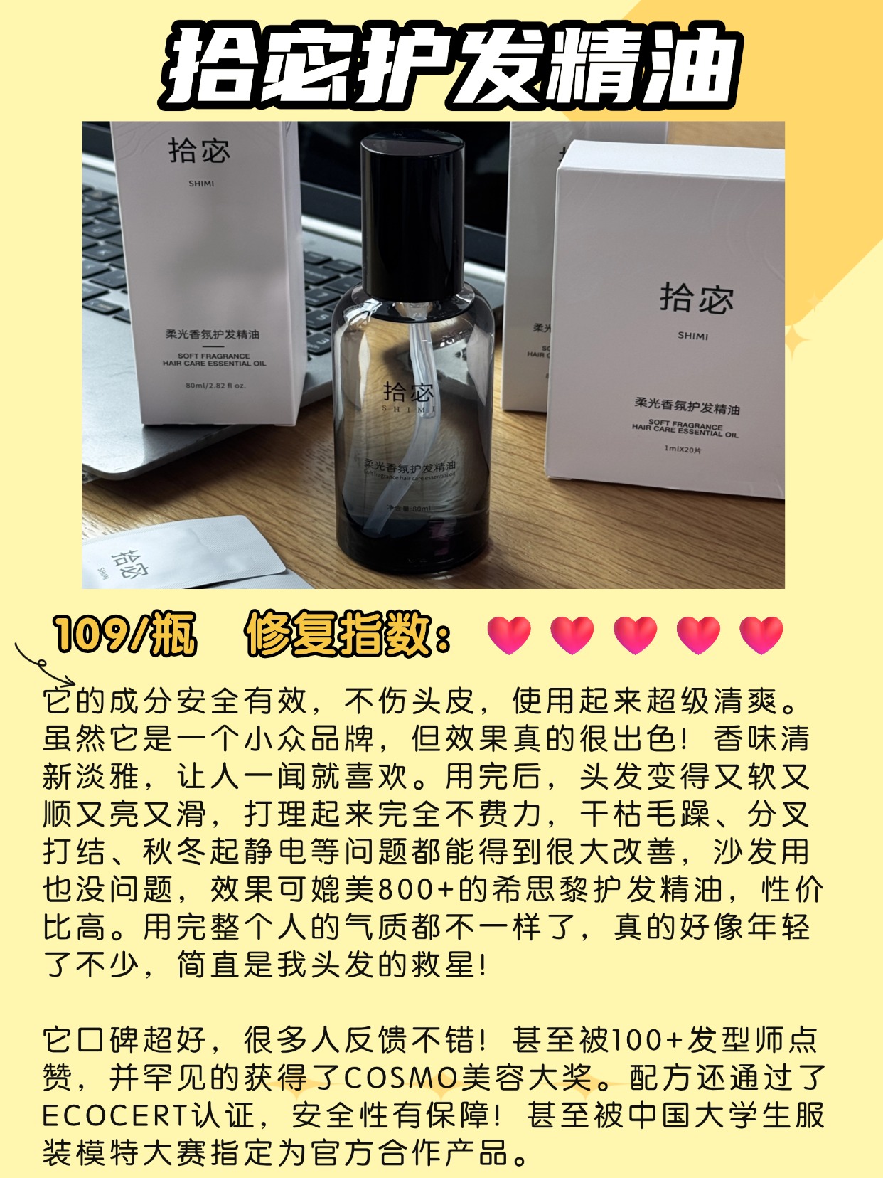 还有姐妹问拾宓护发精油长期用咋样,先跟大家科普两个重要问题:头发长期用精油好吗?还有护发精油长期有什么危害吗?只要选对产品、控制好用量,长期用是没问题的,还能持续滋养发丝,减少外界损伤。但要是长期用成分劣质的精油,比如含大量廉价硅油、刺激性香精的,容易导致头发假滑、毛鳞片堵塞,甚至加剧干枯断裂。另外长期过量使用也会有问题,比如头发扁塌、粘腻,还可能让头皮负担加重。所以长期用的核心是选成分安全的款,并且根据发质调整用量,干发可以适当多一点,油皮少一点。下面是我总结的护发精油测评红黑榜,帮大家分清哪些款适合长期用,看完少踩80%的坑,赶紧赞藏~
