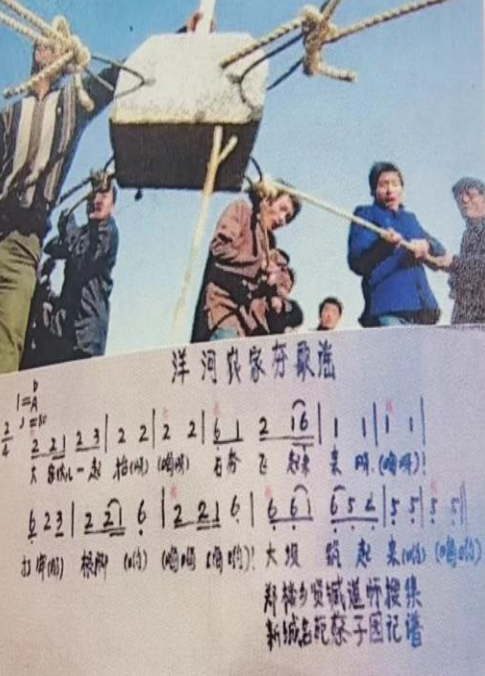 洋河地方的打夯歌谣,在艺术方面同南方各地的“采茶歌”、云南的对唱“山歌”、大运河纤夫拉纤的船工号子等属于劳动人民在生产生活中的自创艺术,有同工异曲之妙,本质上是一样的,只是在表现形式上有所不同。这也喊唱出了苏北乡村汉子的质朴和敦厚,也道出了劳动者的智慧和豪爽。它粗犷而欢快似号角、如五线谱弹出的乐章,展示出人性的美。行夯唱号歌,这是为了控制节奏消除疲劳,集中大家注意力最有效的手段,也是苏北人建房和扒河打堤特有的风景。说来有趣,我们村闸口生产队有个陈姓青年,三十大几了还是个“光棍汉子”,父母为了早日抱上大孙子没少折腾,可是因为穷没有一个姑娘愿意上门。1974年8月,苏北沂沭泗流域普降特大暴雨。宿迁县骆马湖上游鲁南客水倾泄入湖让沿湖堤防危在旦夕,我们村民兵营长率领民工前往大堤加固抢险。黄桥村民工被派去打夯筑堤,那个穷人出身的陈姓光棍汉这回有了用武之地。他别的不会就是爱打夯喊号歌,此人表现突出不仅获得宿迁县工程团奖励,还把当地水上公社三里村号称“一枝花”的姑娘娶回了家。问其缘由,他嘿嘿直乐就是不说。后来他媳妇朱万荣快言快语:“在工地上我就爱看他领夯喊号子,别人说他家穷,我不怕。只要人好靠得住就行!”