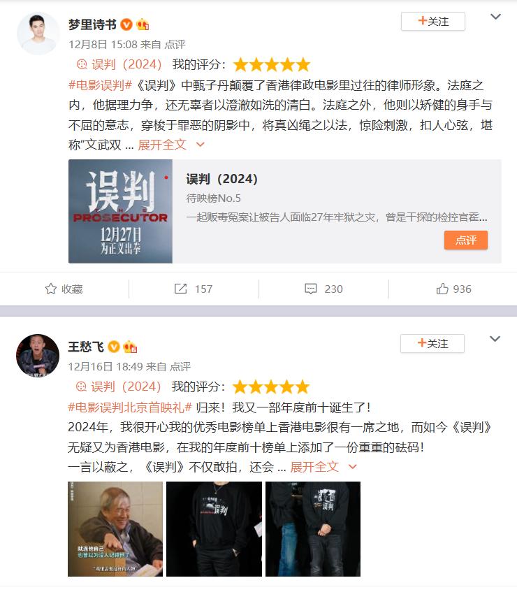 无独有偶,现在随手打开社交媒体,我们都能看到许多大咖对于《误判》的心悦诚服与强烈安利: