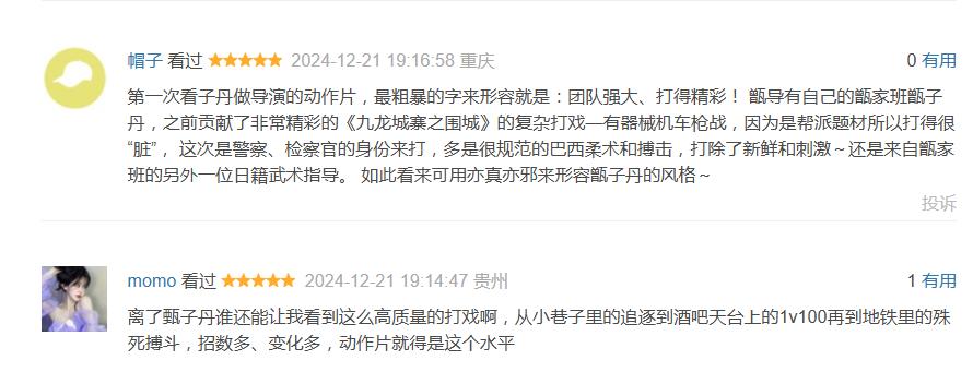 事实证明,动作片在电影市场里一直不缺受众,更何况甄子丹作为世界T0级的动作演员+动作指导,在本身观众缘就不错的情况下,还愿意突破自己,展现自己“文武双全”的能力——这份诚意,自然能换来观众一张张票钱和一个个好评: