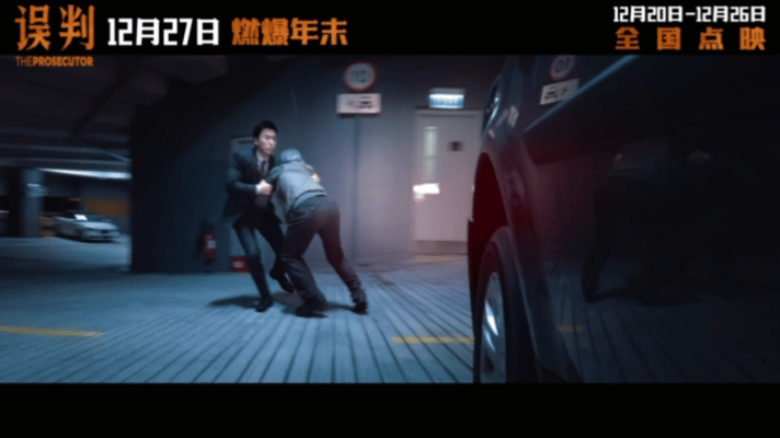 在三楼停车场,甄子丹饰演的霍子豪,为了保护原告家属,与喻亢饰演的、开车袭击而来的金亢0帧起手开打。