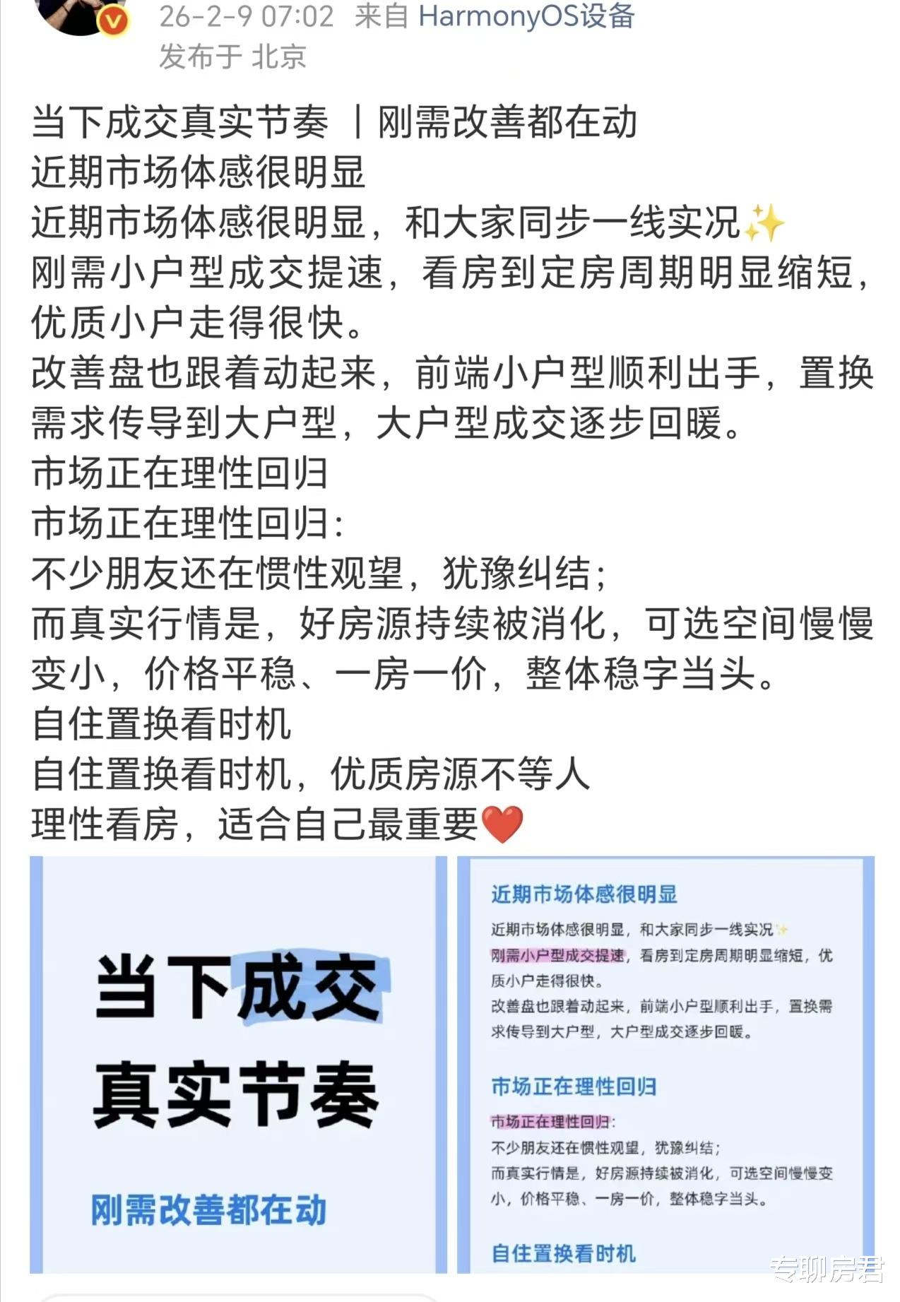 另一名在北京的房产博主也表示,最近市场体感明显,看房定房的周期都在明显缩短,优质小户型走得较快,改善大户型也被带动起来,成交逐步回暖。