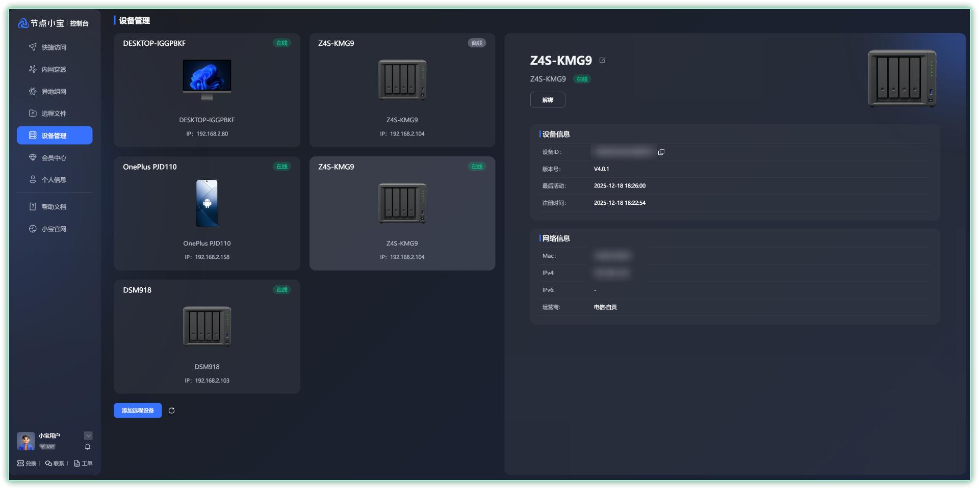 节点小宝作为老牌的跨端跨网远程软件,在 NAS 圈一直都有着不错的口碑,它致力于将复杂的网络技术透明化,让远程连接变得触手可及 。而最近更新的 4.0 版本,更是把易用性、稳定性提升到了新的高度。笔者有幸提前升级到新版本,体验一段时间后写下此文,聊做分享。