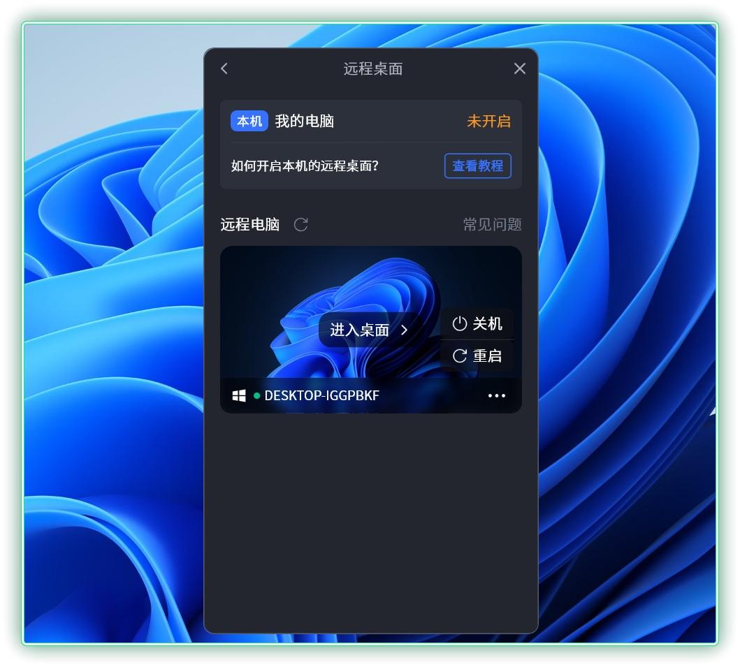 ▼利用自带的“原生远程桌面”,在外也能对家中电脑进行操作维护,甚至远程重启、关机。