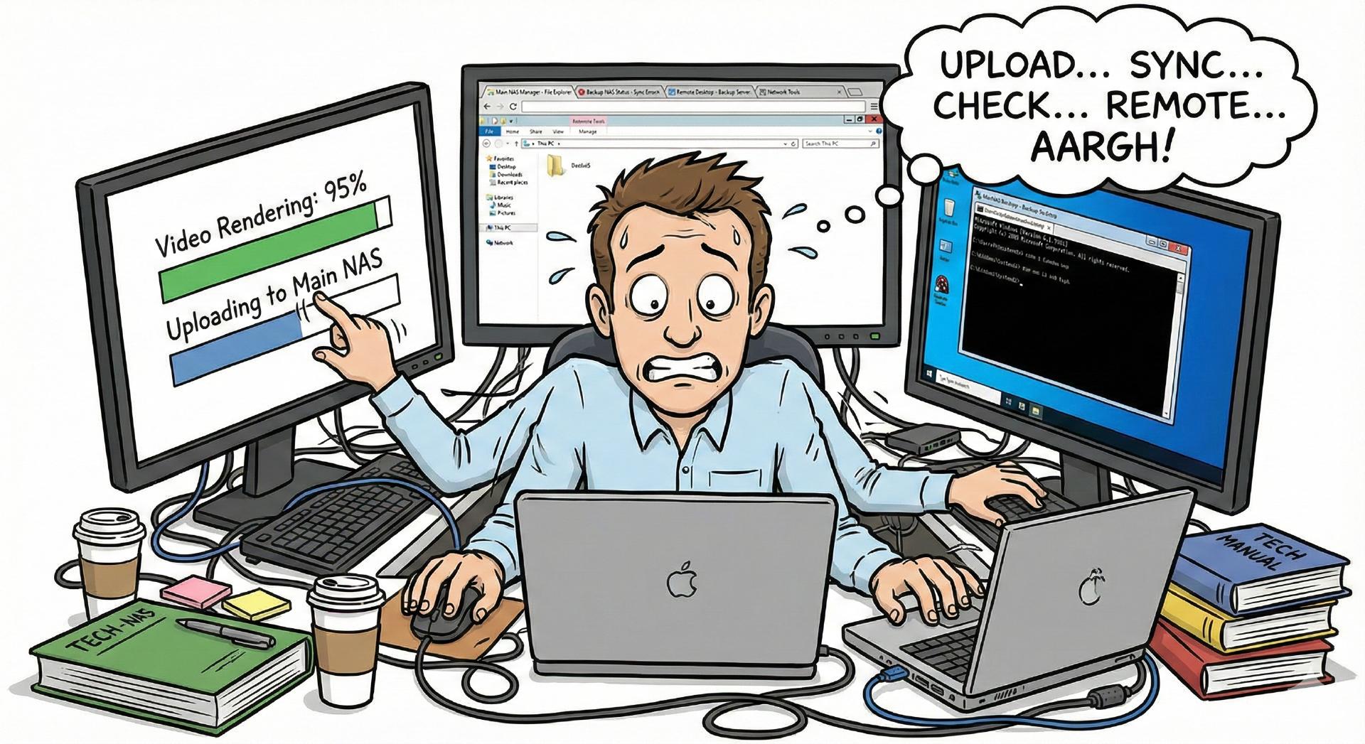 想象个这样的场景:为了把工作站上渲染好的视频传到主 NAS,同时还得去另一台备份 NAS 上检查同步状态,你需要在浏览器多个标签页、不同的管理 App 以及远程桌面软件之间来回切换,手忙脚乱 。
