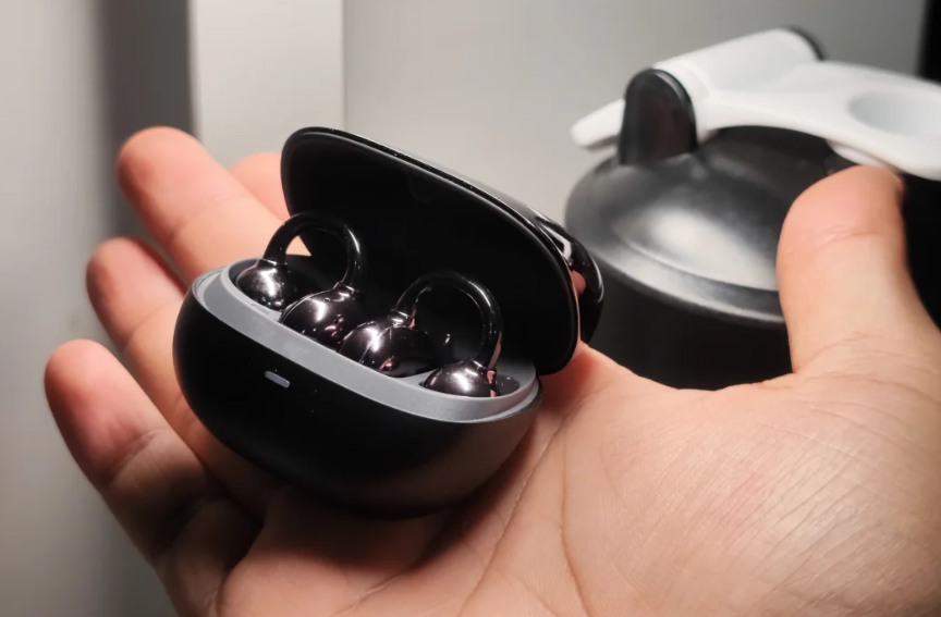 佩戴体验:夹耳式结构,单耳5g,重量控制优秀。记忆金属耳挂可根据耳型微调,日常佩戴稳固;激烈运动时可能轻微晃动,需调整位置。整体佩戴舒适,连续使用2-3小时无压力。