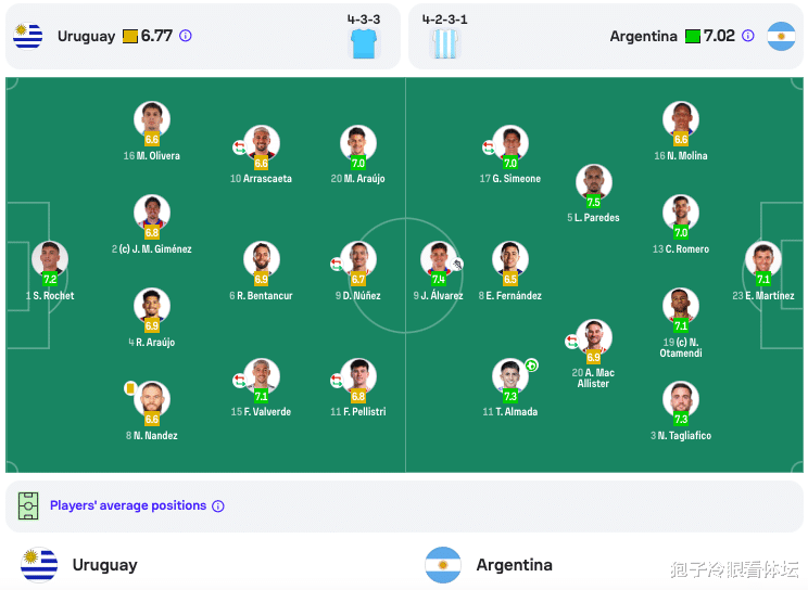 北京时间3月22日上午,世预赛南美区第13轮,世界排名第1的阿根廷客战第11位的乌拉圭,梅西缺席,劳塔罗因伤退出,乌加特停赛,两队都缺少重要球员。