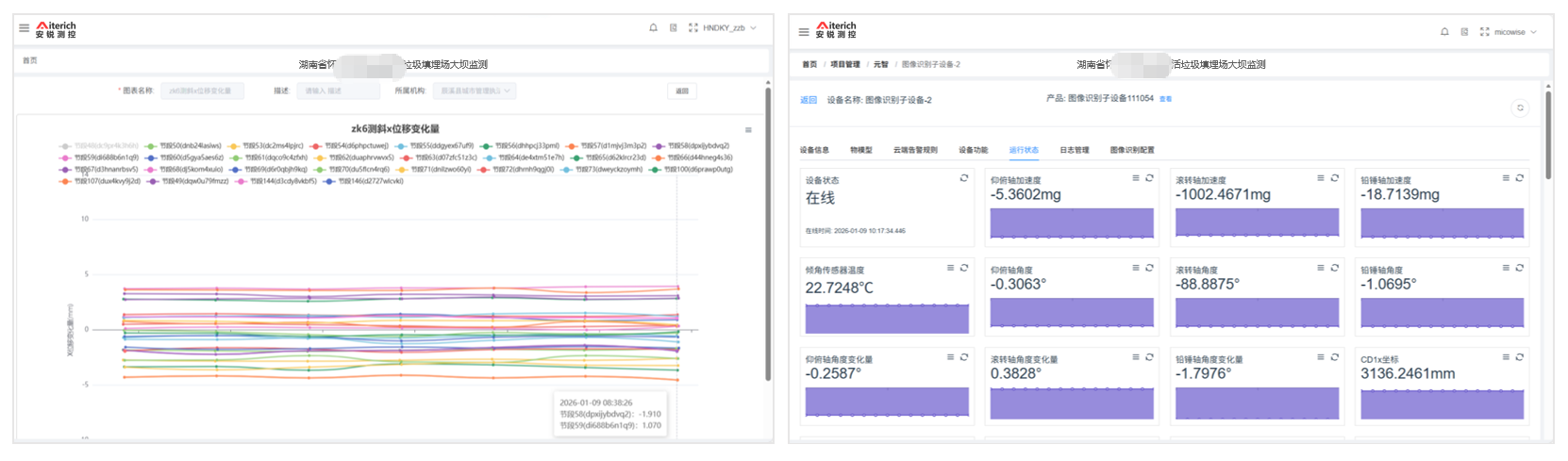 截至目前,该系统已稳定运行 数十天,累计监测了几万条有效数据,未发现坝体异常变形,为该填埋场安全运维提供了精准数据支撑。此次实践不仅验证了节段式位移计在复杂工程场景的适用性,更为全国同类垃圾填埋场、水库大坝等结构安全监测项目,提供了 “技术选型 + 方案设计” 的可复制参考,推动行业监测从 “人工滞后” 向 “自动化精准预警” 转型。