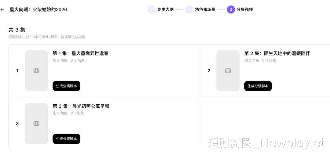 即便是长篇的连续剧剧本,创作者也无需一次次上传单集剧本,输入背景信息进行制作。AI可以将系列短剧标注为某一集的第几场,实现逐集生成,后续无需再重复上传素材和设置参数。
