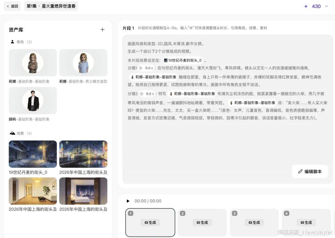 3月中旬,短剧新圈(ID:newplayel)拿到了得小云雀短剧Agent内测资格,并经过多日实测,亲身体验了其便捷的创作流程:仅需上传剧本,Agent便可自动拆解分镜、匹配场景、生成人物,同步完成音效适配,全程无需复杂参数调试,直接就能输出视频成片。