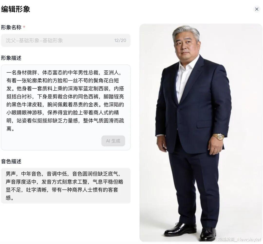 在小云雀AI官网的示例中,短剧新圈(ID:newplaylet)发现,小云雀短剧Agent在分析角色形象外,还标注了他们的性格、配饰、气质,以及拟人化情绪和音色的描述。