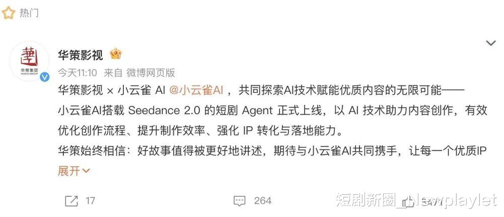 凭借角色一致性强、功能完整、上手门槛低等优势,小云雀短剧Agent不仅受到中小创作者青睐,更获得了华策影视、柠萌影视等传统影视头部机构的关注与认可。