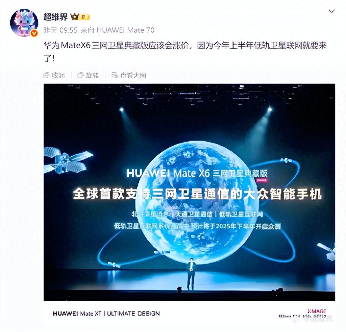 最近关于华为 Mate X6 三网卫星典藏版可能涨价的讨论,并不是空穴来风,而是一个时间点刚好撞上的结果。