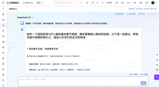 记者登录了百度智能云网站,只需要点击在线体验,进行实名认证,在“模型广场”就可以调用DeepSeek-R1和DeepSeek-V3模型。据介绍,该模型由杭州深度求索人工智能基础技术研究有限公司自研,在数学、代码、自然语言推理等任务上性能表现优异。
