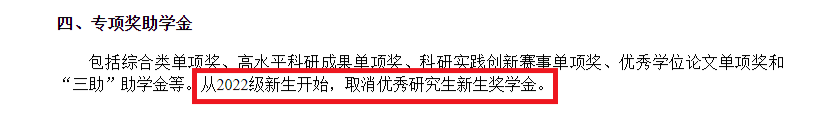 从2024年招生周期开始取消硕士研究生新生(学业)奖学金。