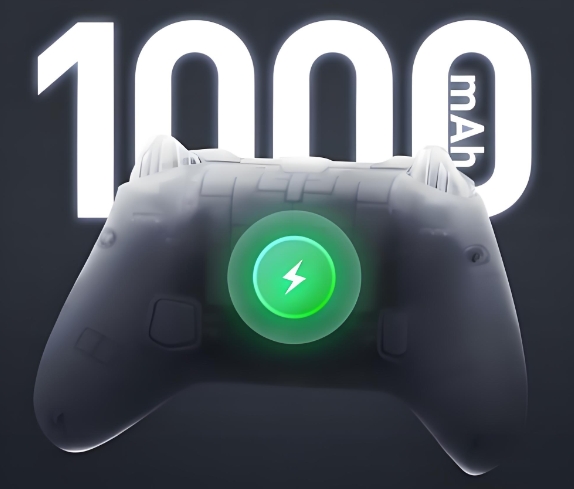■实际体验上,本代把沉浸感做得更到位,扳机加入微动与震动反馈后,射击与赛车的触感更有层次;回报率从200Hz直接提升至1000Hz,在2.4G与有线模式下都达到了当前主流水平,响应速度和稳定性进步很明显。屏幕亮度提升、底座新增接收器收纳位,使用和存放都更友好。ABXY按键改为光轴结构,触发行程短、速度快,长时间按压不累,不过相较传统微动那种清晰的“段落冲击感”,光轴手感会略柔一点,偏爱硬脆反馈的玩家可能需要适应。续航方面,内置1800mAh 电池,满电基本可以覆盖约10小时高强度游戏。