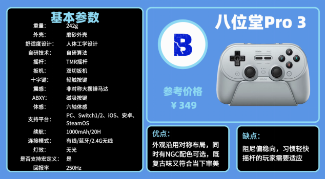 游戏手柄推荐2026推荐榜清单三:八 位堂P ro 3游戏手柄