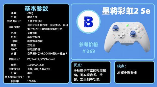 游戏手柄推荐2026推荐榜清单四:墨 将彩 虹2SE游戏手柄