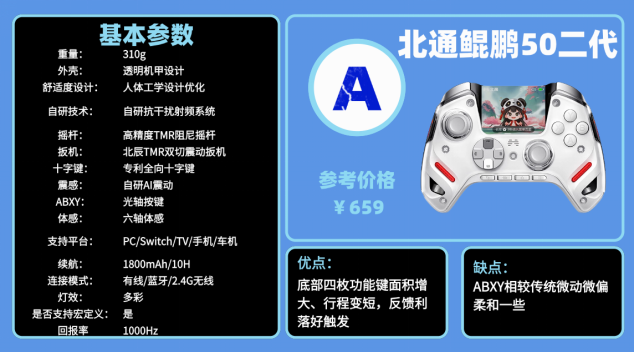 游戏手柄推荐2026推荐榜清单六:北 通鲲 鹏50二代游戏手柄