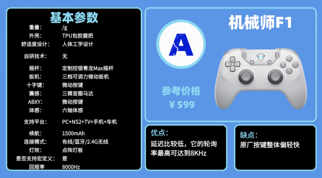 游戏手柄推荐2026推荐榜清单七:机 械师F 1游戏手柄