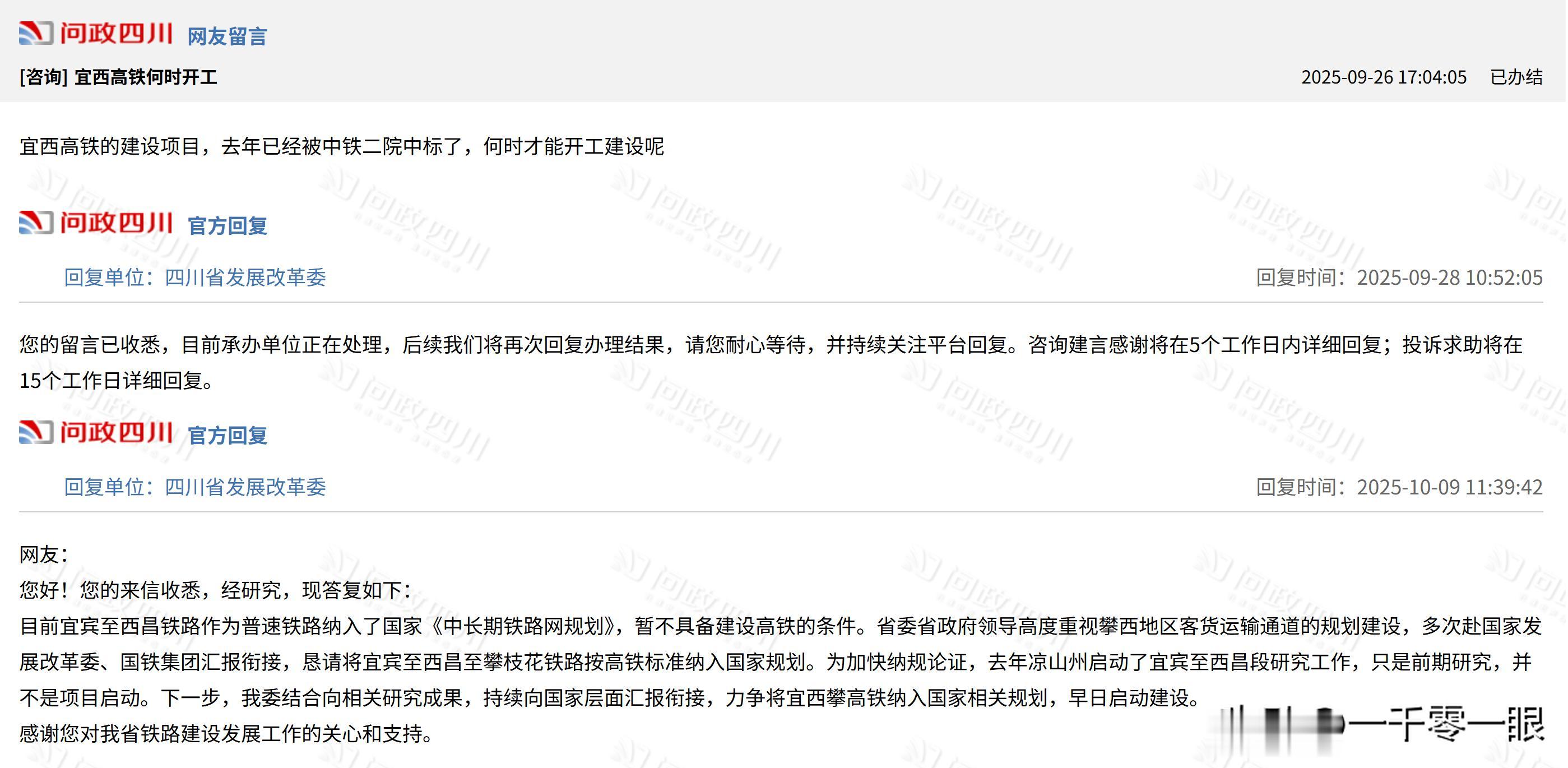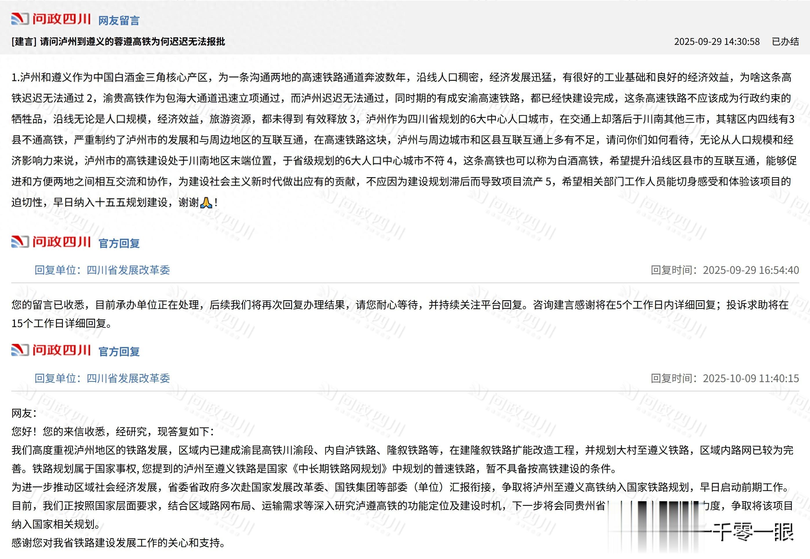 10月9日,四川省发改委对网友关切的泸遵高铁、宜西高铁建设问题作出集中回应,称2条线路暂不具备按高铁建设的条件。(详细内容见下面2张截图)