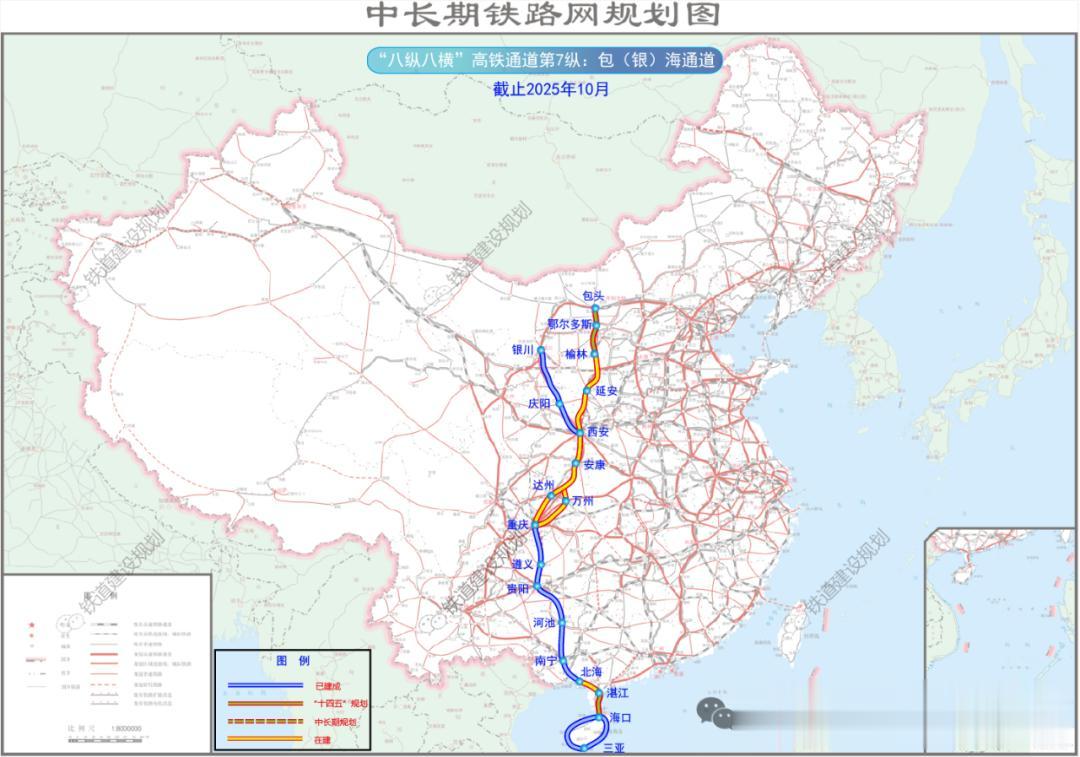 根据规划,包(银)海通道主线为包头至海口,支线为银川至西安,目前仅余最北段的包头至榆林段和最南段的湛江至海口段还未开工,湛江至海口段已具备可研批复条件,将争取在明年开工建设。