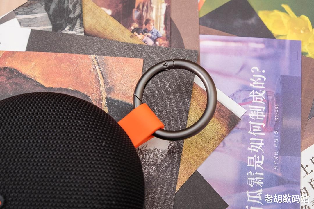 在音箱上方还提供了一个结实的可拆卸金属挂扣,你可以轻松将它挂在背包、自行车上,无论是户外露营还是骑行漫步,音乐都能随时相伴,大大拓展了使用场景。