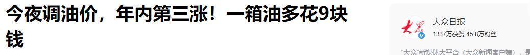 今晚油价要调整,今年第三次上涨!加一箱油得多掏9块钱。