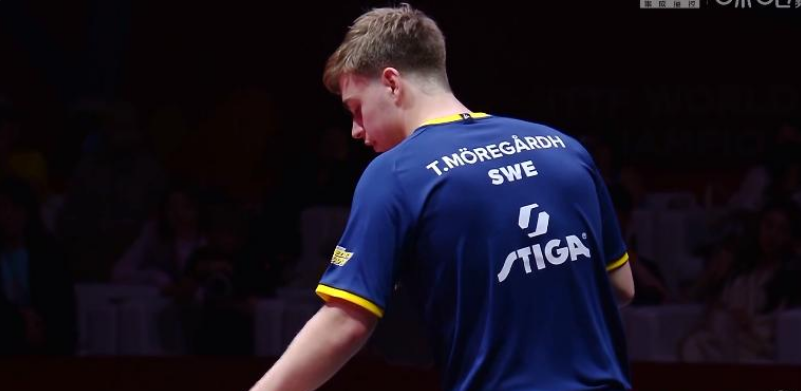 第三局王楚钦全面掌控节奏,开局阶段连续五个发球轮得分。第三分出现本场首个擦网球,王楚钦迅速调整步伐完成正手挑打。莫雷加德在该局中段尝试改变击球节奏,两次使用放高球战术但均被王楚钦反拉得分。8-1领先时,王楚钦反手撕直线擦边得分引发鹰眼挑战,回放显示球体接触台面1/3部分。局末王楚钦以11-2速胜,该局耗时仅6分23秒,创本届赛事单局最快纪录。