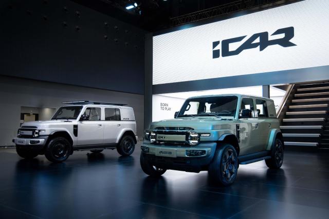 首先,咱们得聊聊iCAR V23的外观。你看那车身,是不是有种复古感觉?iCAR V23的设计团队可是下足了功夫,每一个细节都透露着匠心。走进车展现场,你几乎能在每个展馆的核心位置看到它,无论是在静态展示区,iCAR V23总是能吸引大量围观。它的颜值,让人无法忽视,仿佛是车展中的一颗璀璨明珠,无论走到哪里都能看到它的光芒。车身棱线分明,展现出十足的气势。灯组采用了圆形设计,并在内部搭配双幅平行样式的LED日间行车灯,上方灯组外展延伸至车头两侧,形成三段式的排列,点亮后具有极高的辨识度。车身侧面,iCAR V23整体造型棱角分明,前后翼子板宽出车体,同时采用了隐藏式门把手以及五辐式的轮圈。车尾部分,iCAR V23配备了3X3点阵式尾灯,点亮后极具辨识度。旁边拥有十字形和斜向的花纹,灵感来源于军用油桶等装备的加强筋线设计,为这款小车增添了几分硬派气息。