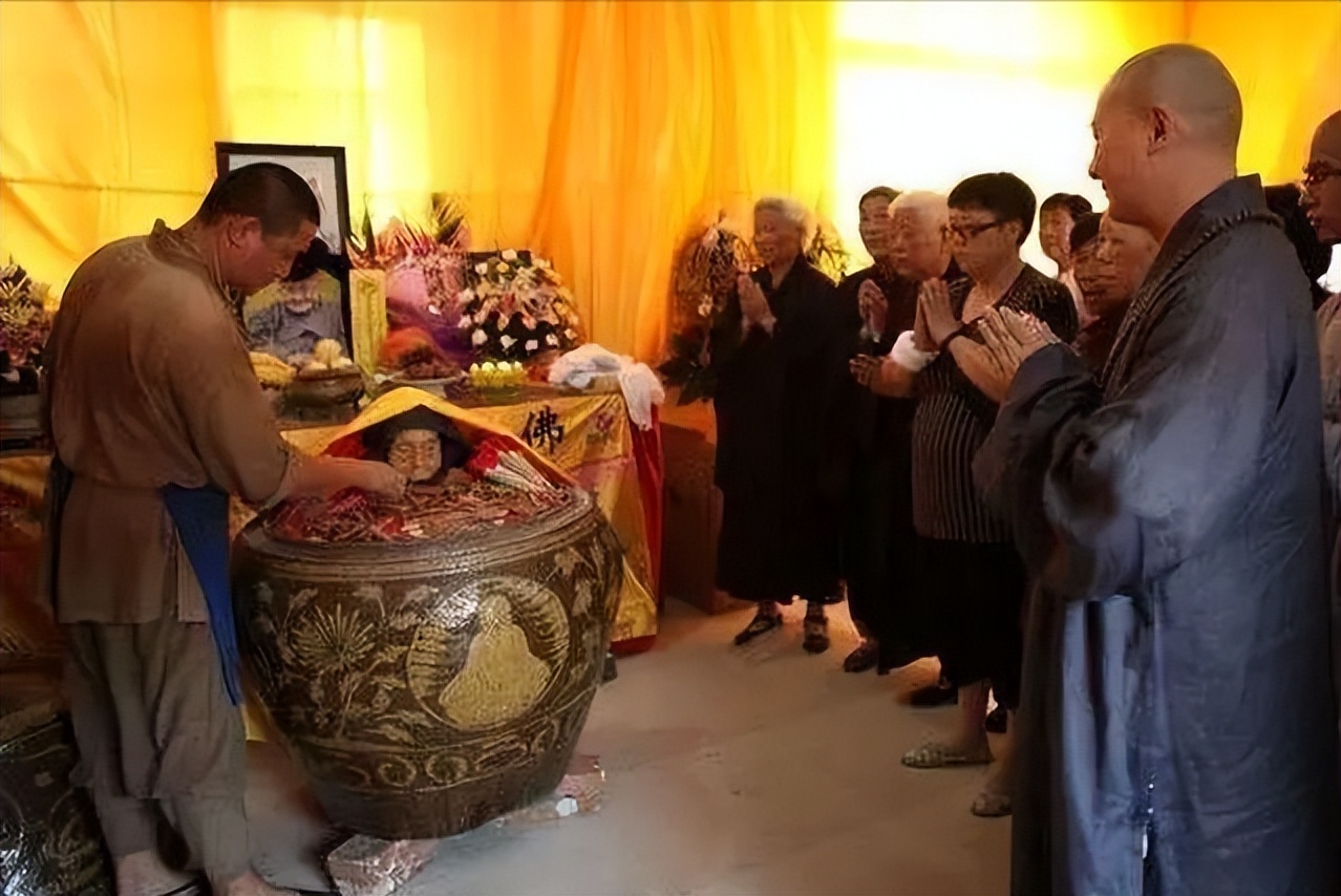 圆寂后,她要求同门按佛教仪式为她“坐缸”,三年后才开缸查看遗体情况。
