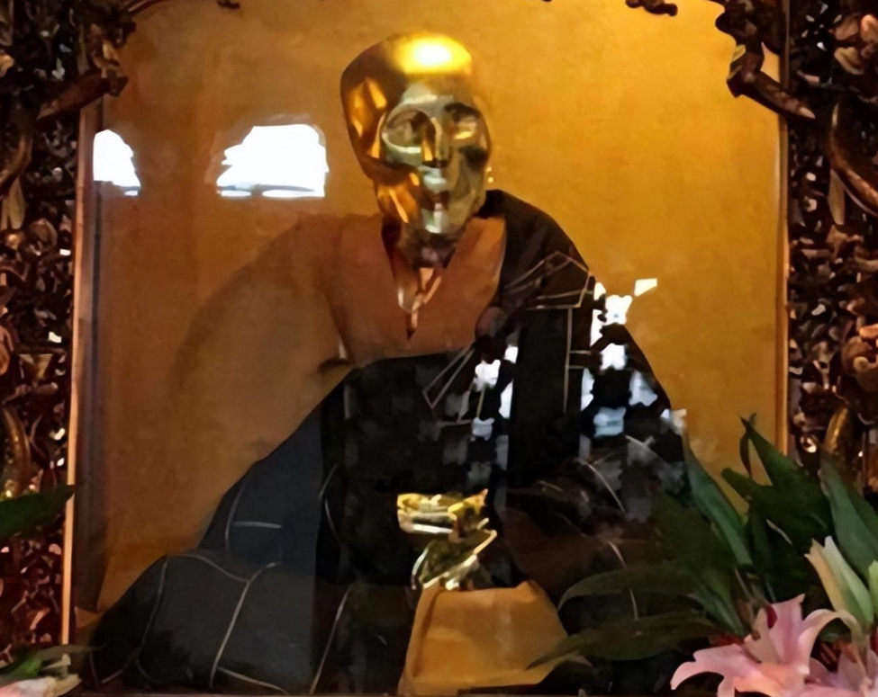 于是,这尊肉身活佛就是我们现在看到的金光闪闪的样子。