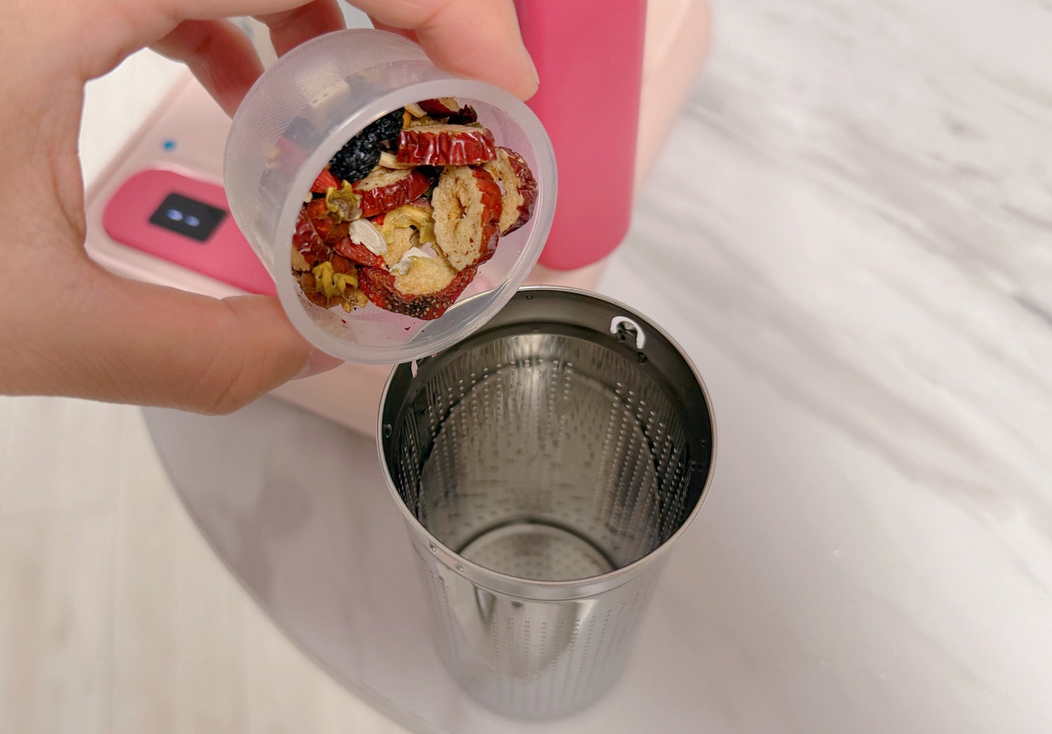 先来煮一壶西洋参黄芪党参玫瑰茶,选择花茶模式,30分钟就可以搞定。煮茶过程中,玫瑰茶香特别浓郁,美味扑面而来。