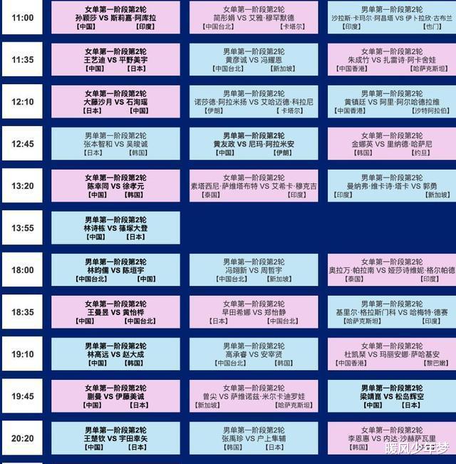 今儿赛程还是老样子哈,分上午11点跟晚上6点两个时间段比赛。小组赛,所有参赛队员都得参加,咱国乒这12名队员今天一个不落,全都得上场。中午时段6个人比,晚上时段也6个人比。