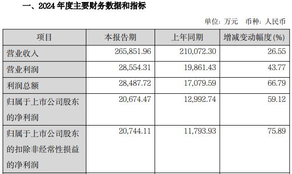 4月6日晚,莲花控股(600186.SH)发布2024年度业绩快报,报告期内,公司实现营业收入26.59亿元,同比增长26.55%;利润总额达2.85亿元,同比增长66.79%;归母净利润 2.07亿元,同比增长 59.12%。