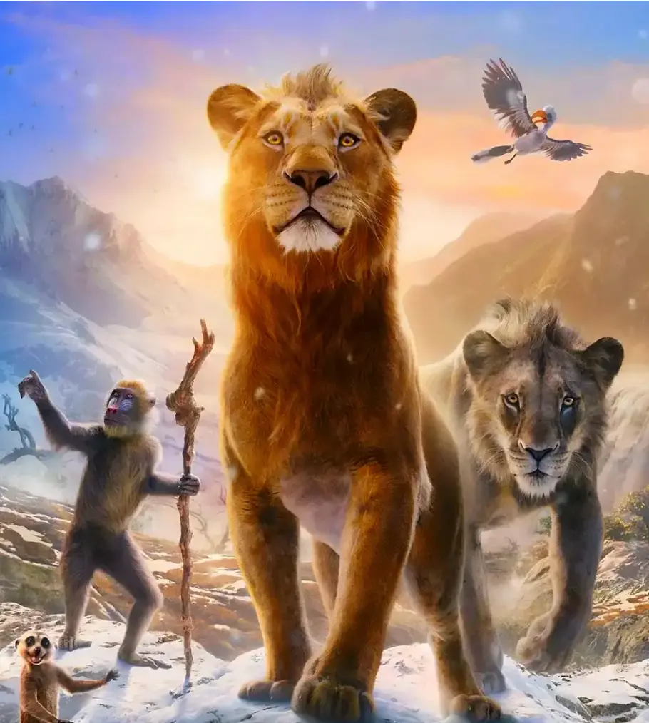 剧情解析:这部电影作为《狮子王》系列的前传,不仅扩展了“狮子王宇宙”,而且深入讲述了木法沙从孤儿到王者的英雄旅程,同时也剖析了经典反派刀疤塔卡从纯真王子到阴暗怯懦的心路历程。影片通过辛巴的女儿Kiara的视角,讲述了木法沙的传奇故事,包括他与塔卡之间深厚的兄弟情谊以及他们之间的矛盾和冲突。影片深刻探讨了成长、责任与背叛等复杂的人性命题,展现了木法沙如何凭借智慧、勇气和责任感,最终成为狮群的领导者。