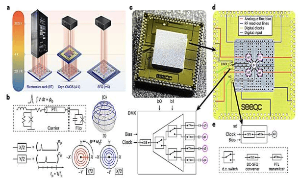 Caleb Jorda和Jacob Bernhardt等研究人员在论文中指出:“超导量子计算平台的扩展面临挑战,主要源于每个量子比特需要单独的控制线。我们提出了一种有源量子处理器单元,利用低温超导数字控制电子器件与量子比特共存,并通过数字解复用技术分配控制脉冲,打破了控制线与量子比特数量的线性关系。”初步测试显示,该处理器的单量子比特保真度超过99%,最高可达99.9%。