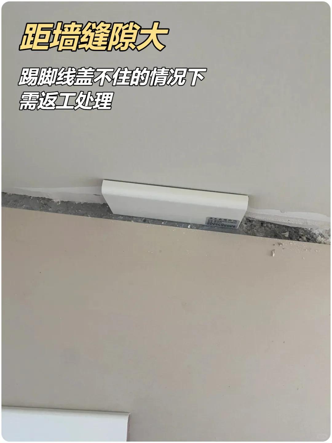 ▲踢脚线正常厚度1.5cm左右,金属材质的更薄,踢脚线盖不住要么换砖,要么墙体腻子加厚处理,都很糟心,这是验收重点。