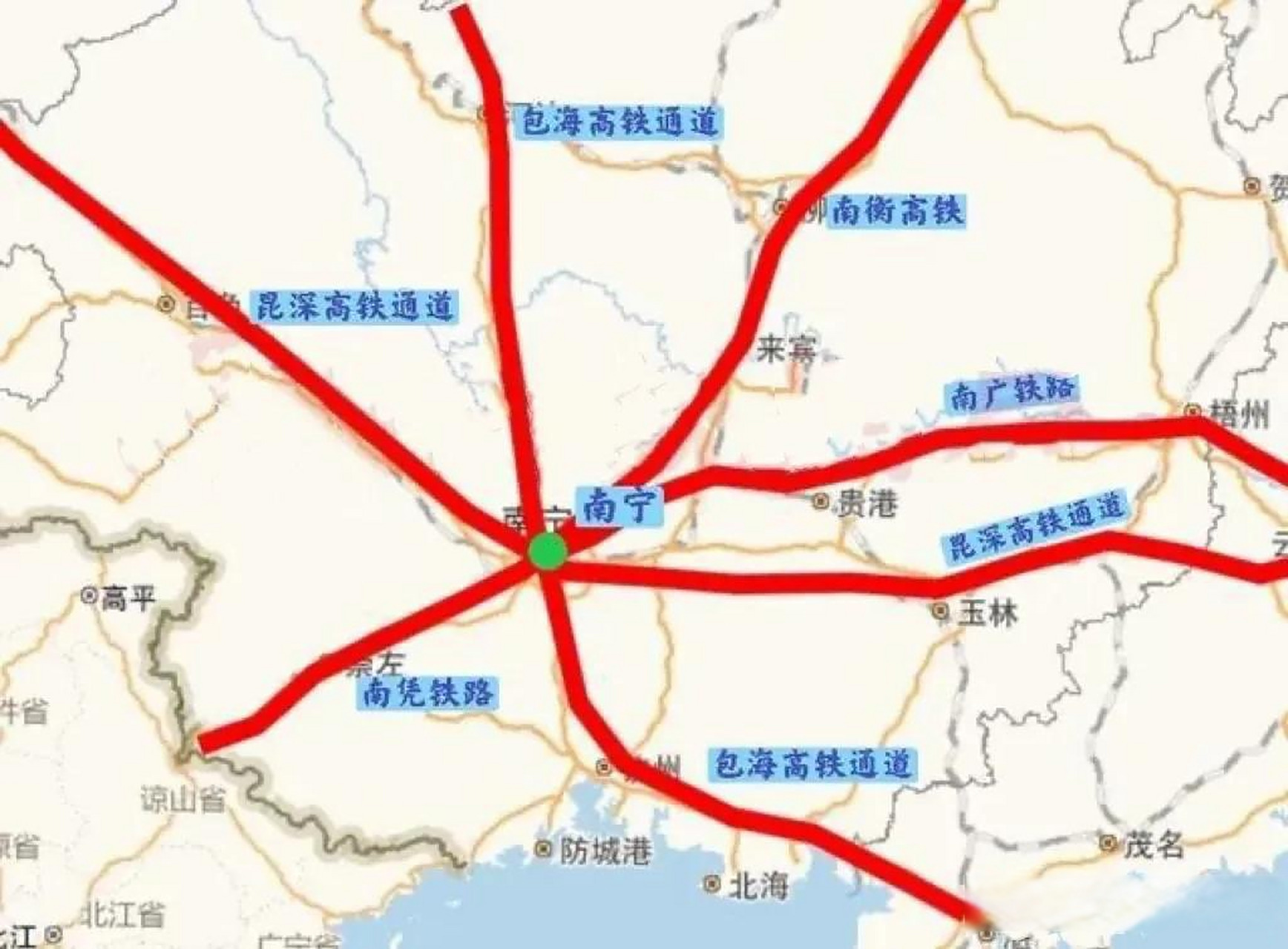 北部湾地区(钦州、北海、防城港)的高铁线路(如南钦高铁、钦北高铁)与南宁东站的衔接不畅,导致绕行。