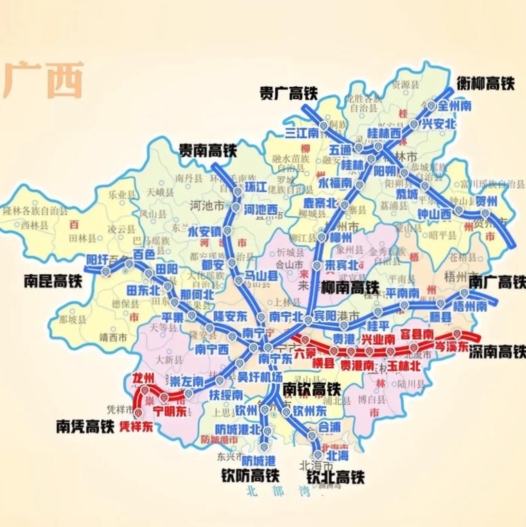 南合高铁:连接南宁与合浦,设计时速350公里/小时,全长150公里,预计2026年建成,实现南宁→合浦30分钟直达。