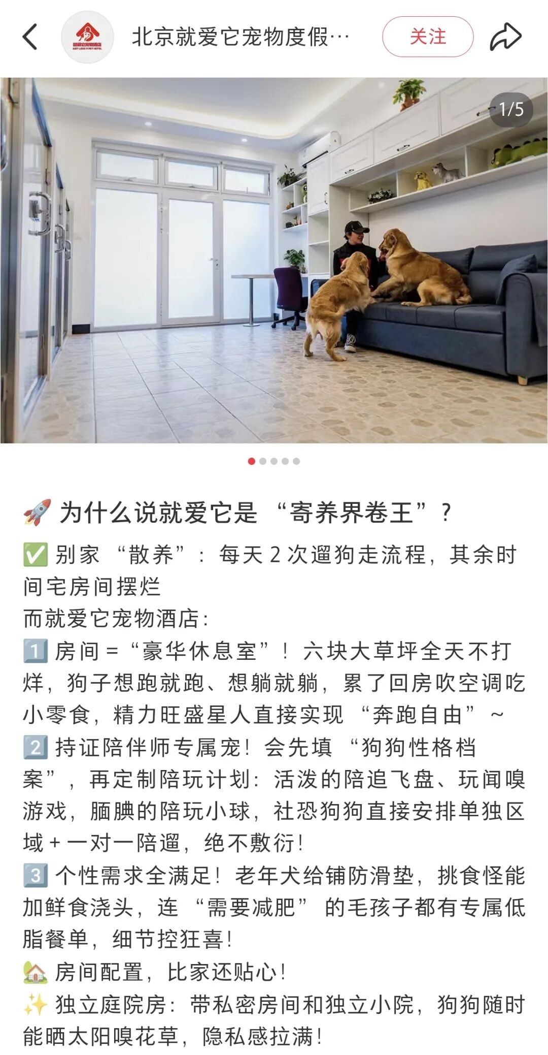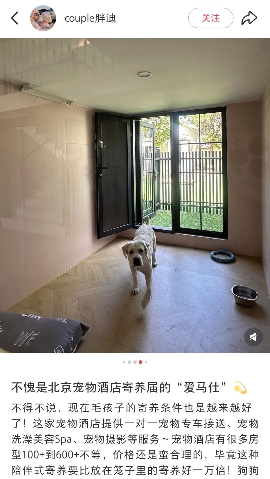 最近刷到一家宠物酒店的介绍,直接把我给看乐了。给狗子住的阳光套房、带独立花园的庭院别墅,一天房费轻松一两百元。