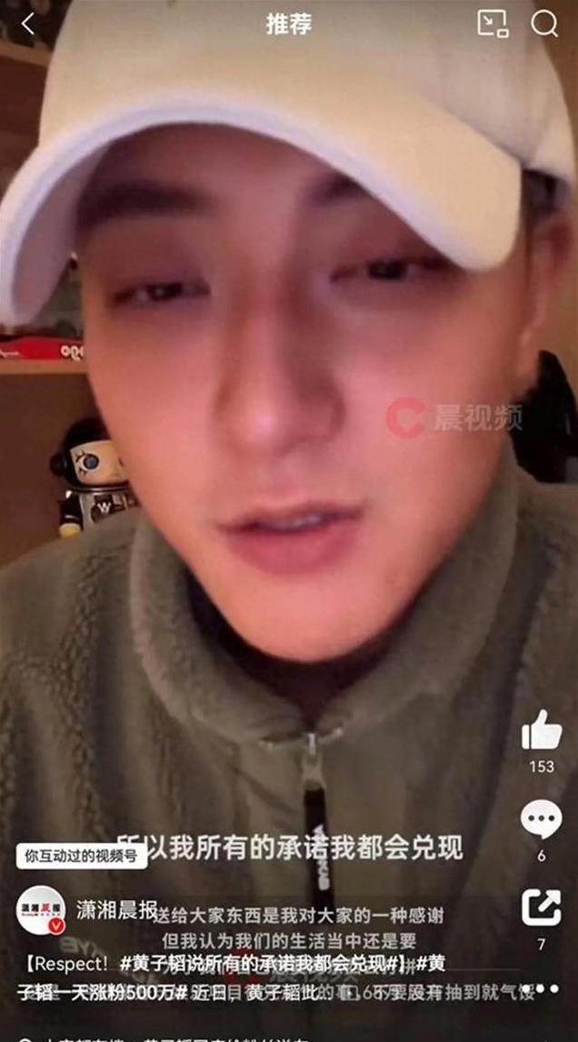 这一切的源头还要追溯到黄子韬直播中的一贯“耿直人设”。他在直播间里频频对着镜头发誓:“我承诺的事情一定会做到,大家给我点时间!”