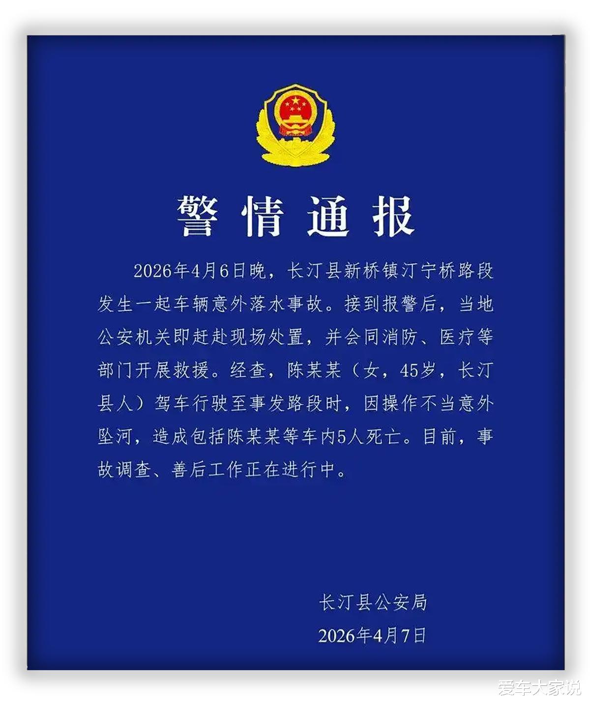 想必大家都看过这个新闻了:福建龙岩一辆SUV由于驾驶员操作失误,导致车辆冲破护栏掉入河里,车上5人身亡。
