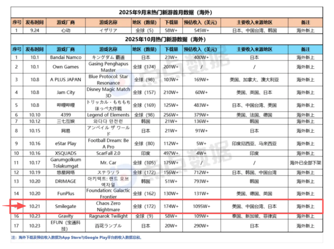 这款由韩国Smilegate旗下知名团队SUPER CREATIVE打造的宇宙黑暗幻想题材新游,关键在于成功实现了Roguelite式的牌组策略玩法的手游化,去年10月海外推出后,出人意料地迅速登顶美国、日韩、港澳台等多个国家及地区App Store免费榜,上线仅十天便斩获超1095万美元预估收入,强势拿下2025年10月海外新游收入榜首。
