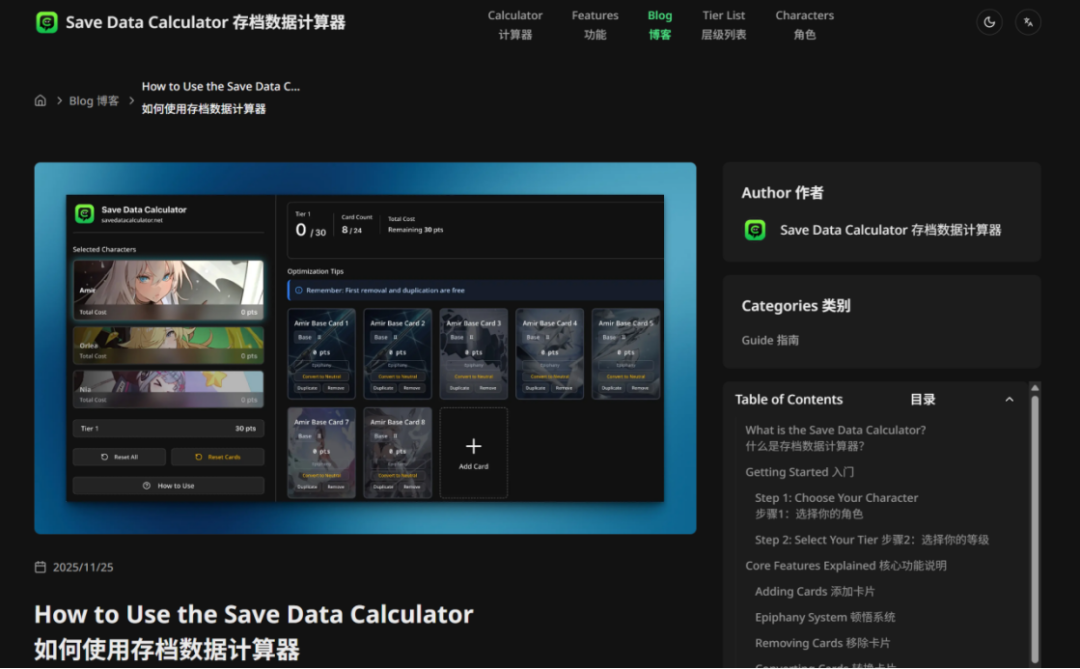 图:玩家不仅为游戏制作了相关数据计算器,甚至配备了包含使用指南的网页站点