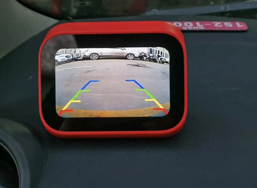 这是用红色版本小爱触屏音箱改造的“后视影像”,相比白色版本更具有辨识度。我自己就有一台红色联通版,二手比较少见,需要花时间去找,硬件配置是一样的。