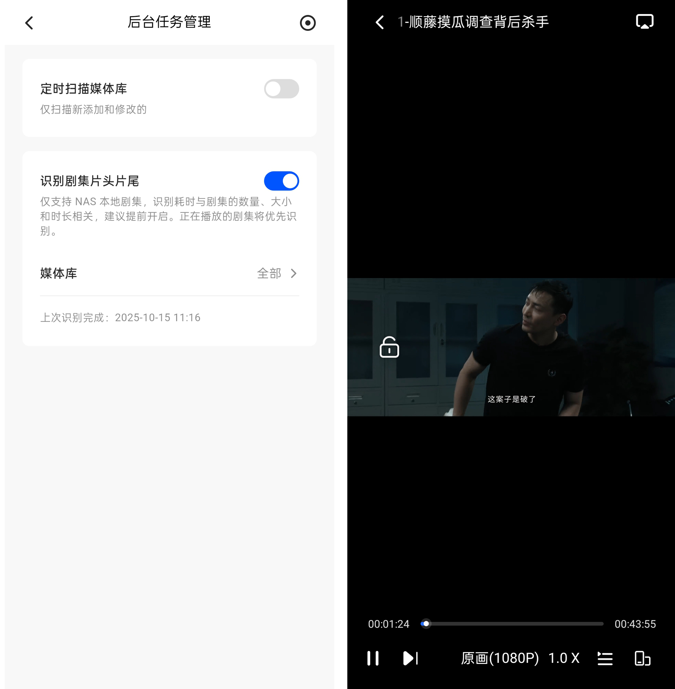 在打开“识别剧集片头片尾”开关后,还能自动跳过,我们追剧更加畅快。