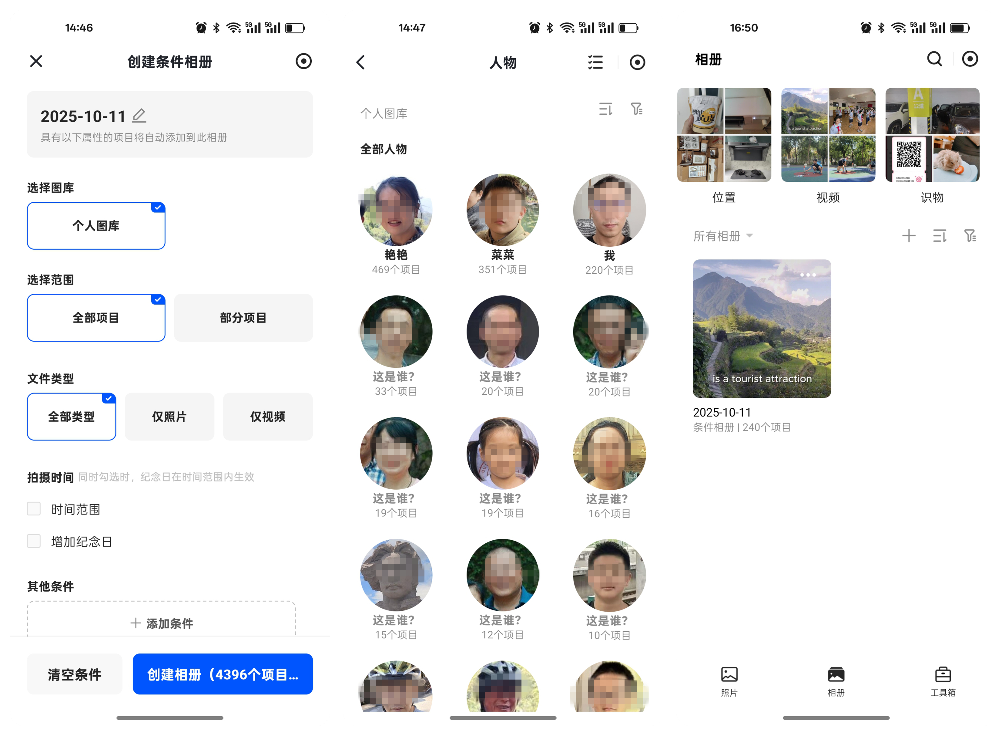 绿联DH4300 Plus除了支持我们自定义调节来建立新相册之外,还能利用AI技术来管理相册,除了能根据时间、人物、位置、物体识别这些信息进行集中整理、排序,这样我们就可以用关键词快速筛选出我们需要的图片,就算是很久之前的图,用合适的关键字也能一下子找到,用起来非常的方便。