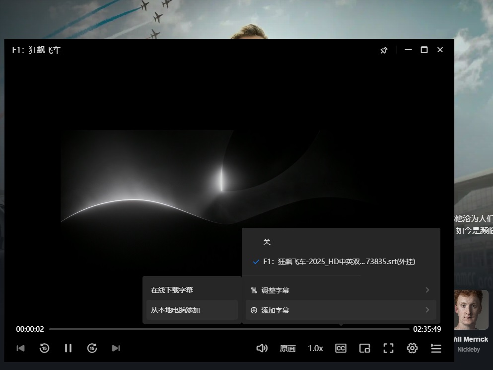 也可以手动从本地添加字幕,满足影视发烧友的高要求。